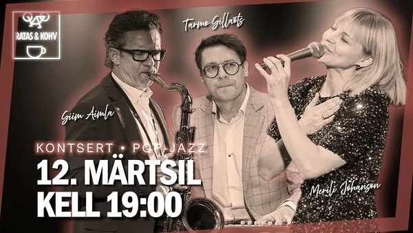 N 12.03 kell 19.00Merili Johanson, Siim Aimla ja Tarmo Sillaots on muusikud ja head sõbrad, kes on koos musitseerinud juba üle kümne aasta. Nende kohtumispunkt on jazz – mitte eesmärgina omaette, vaid kui keel, mille kaudu rääkida lugusid, mida me juba tunneme.