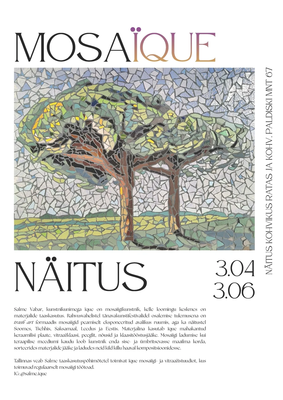 Tallinnas veab Salme taaskasutuspõhimõtetel toimivat ïque mosaiigi- ja vitraažistuudiot, kus toimuvad regulaarselt mosaiigi töötoad.